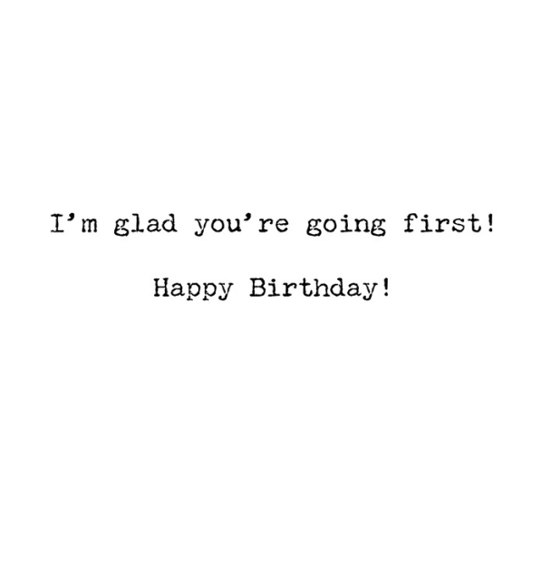 Outside: Someday we'll be two dear sweet old ladies! Inside: I'm glad you're going first! Happy Birthday! Made in the USA.