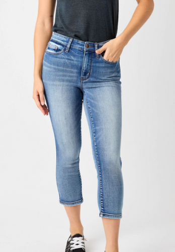 Judy Blue Mid-Rise Contrast Wash Capri