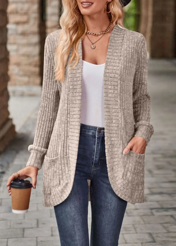 • Long Front Open Long Sleeve Sweater Jacket with Pockets | Khaki