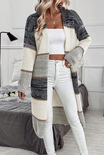 • Casual Loose Striped Colorblock Long Knit Cardigan
