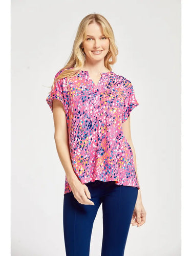 Coral Multi Lizzy Dolman Short Sleeve Wrinkle Free Top