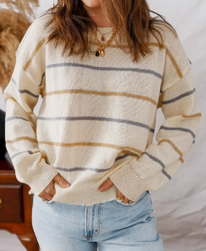 Effortless Colorful Striped Long Sleeve Sweater | Apricot